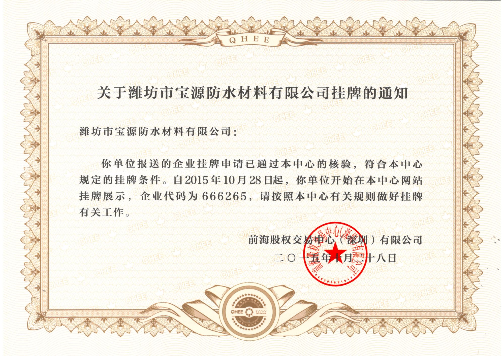 挂牌通知